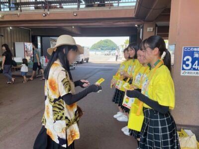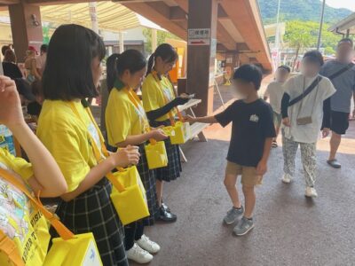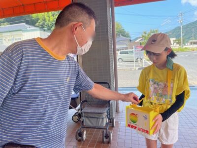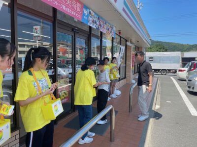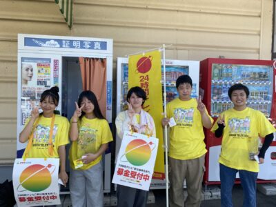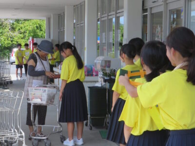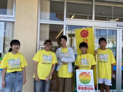 地域の中高生と協力して、毎年 24時間テレビ愛は地球を救う の募金活動に取り組んでおり、たくさんの募金にご協力をいただいています。